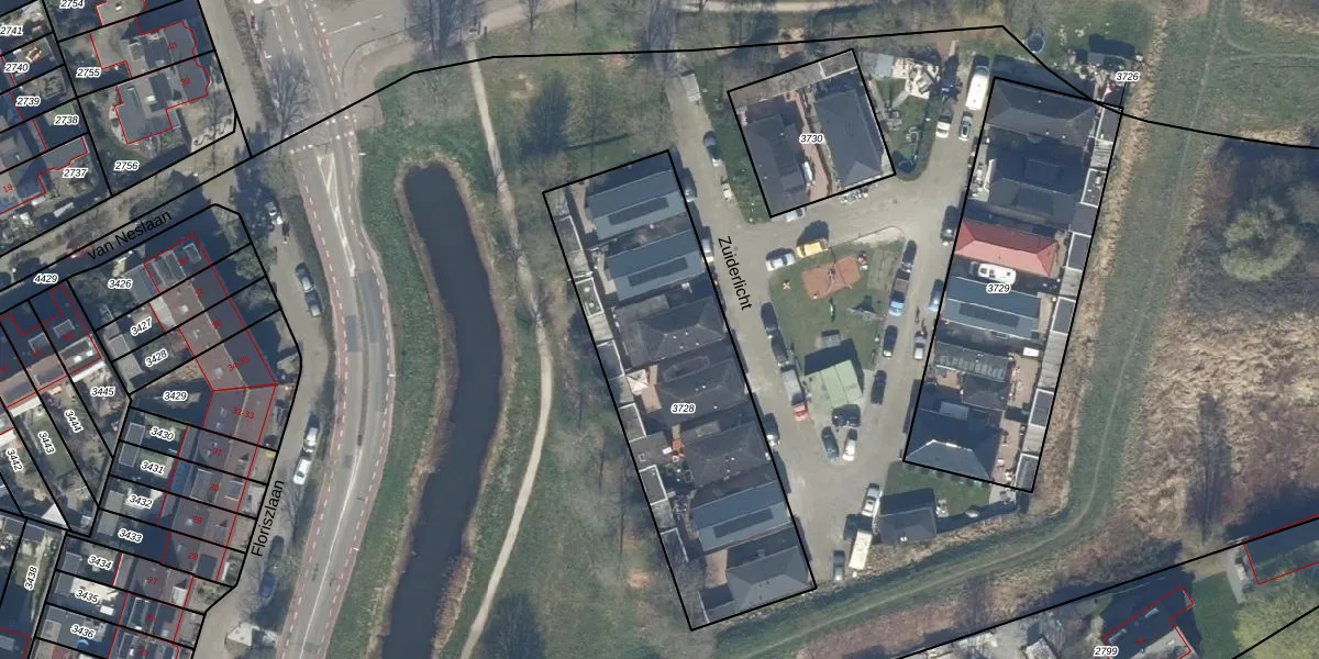 Het perceel waarop Zuiderlicht 3 staat heeft een oppervlakte van 1409 m². Dit is een zeer groot perceel. De perceeloppervlakte wordt geregistreerd door het Kadaster. Gedetailleerde informatie over de maten van dit perceel kunt u vinden in het rapport Kadastrale kaart met maatvoering van Zuiderlicht 3.