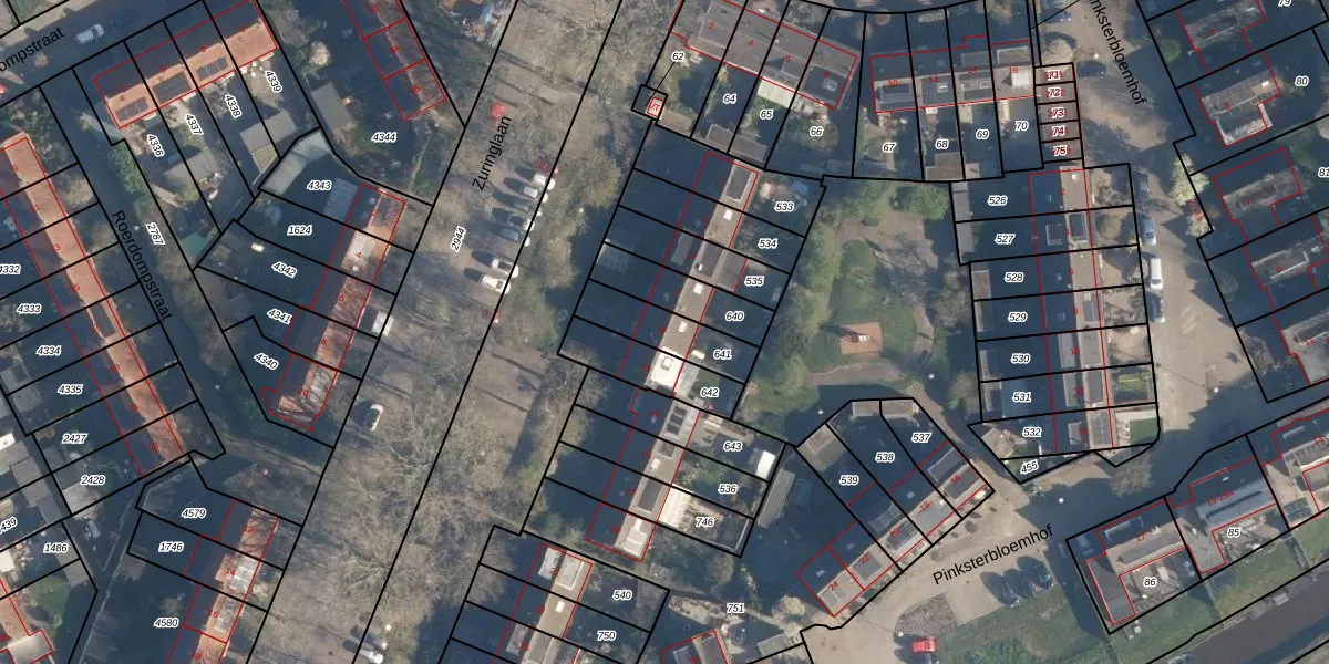 Gebruik de zoekbalk of klik op een perceel voor informatie over de adressen binnen dit perceel.