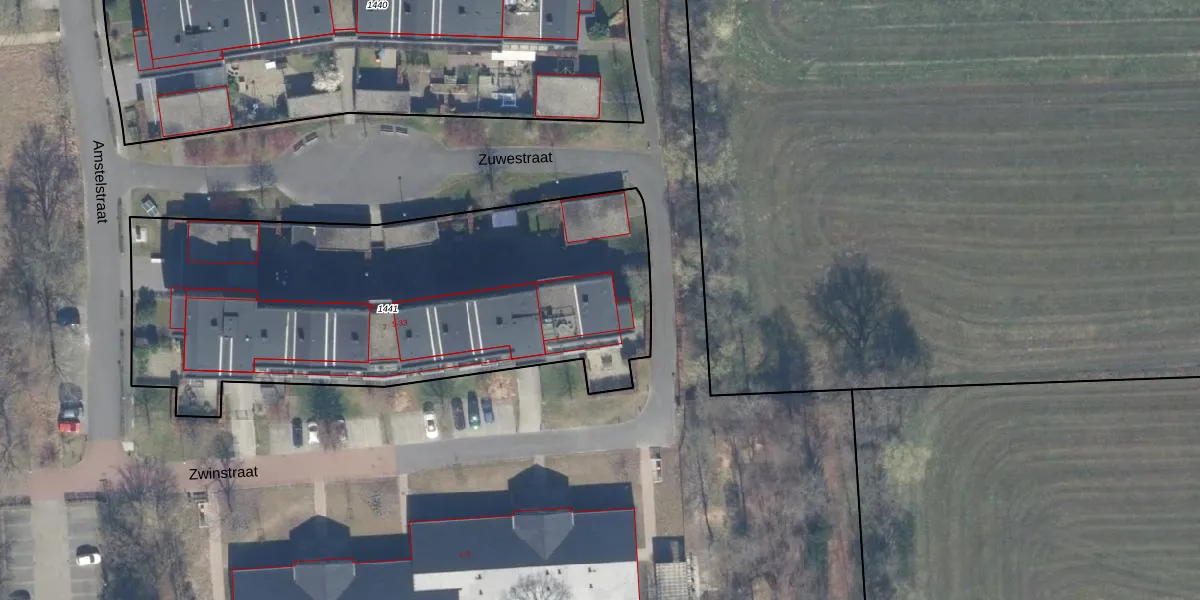 Het perceel waarop Zuwestraat 1 staat heeft een oppervlakte van 2432 m². Dit is een zeer groot perceel. De perceeloppervlakte wordt geregistreerd door het Kadaster. Gedetailleerde informatie over de maten van dit perceel kunt u vinden in het rapport Kadastrale kaart met maatvoering van Zuwestraat 1.