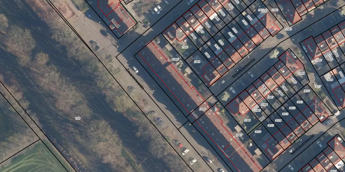 Zwanenweide 102 is gelegen op kadastraal perceel BAA01M2885. Deze kadastrale aanduiding is uniek en wordt gebruikt door het Kadaster om eigendomsrechten en andere zakelijke rechten vast te leggen. Het perceel maakt onderdeel uit van de kadastrale gemeente Baarn.