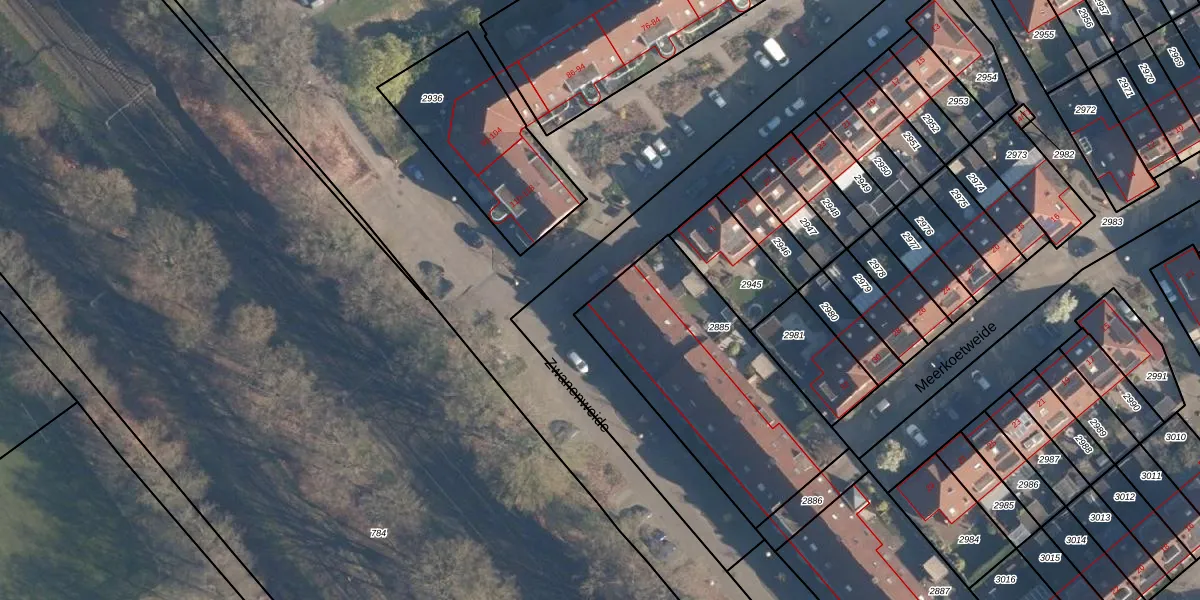 Het perceel waarop Zwanenweide 108 staat heeft een oppervlakte van 1000 m². Dit is een zeer groot perceel. De perceeloppervlakte wordt geregistreerd door het Kadaster. Gedetailleerde informatie over de maten van dit perceel kunt u vinden in het rapport Kadastrale kaart met maatvoering van Zwanenweide 108.