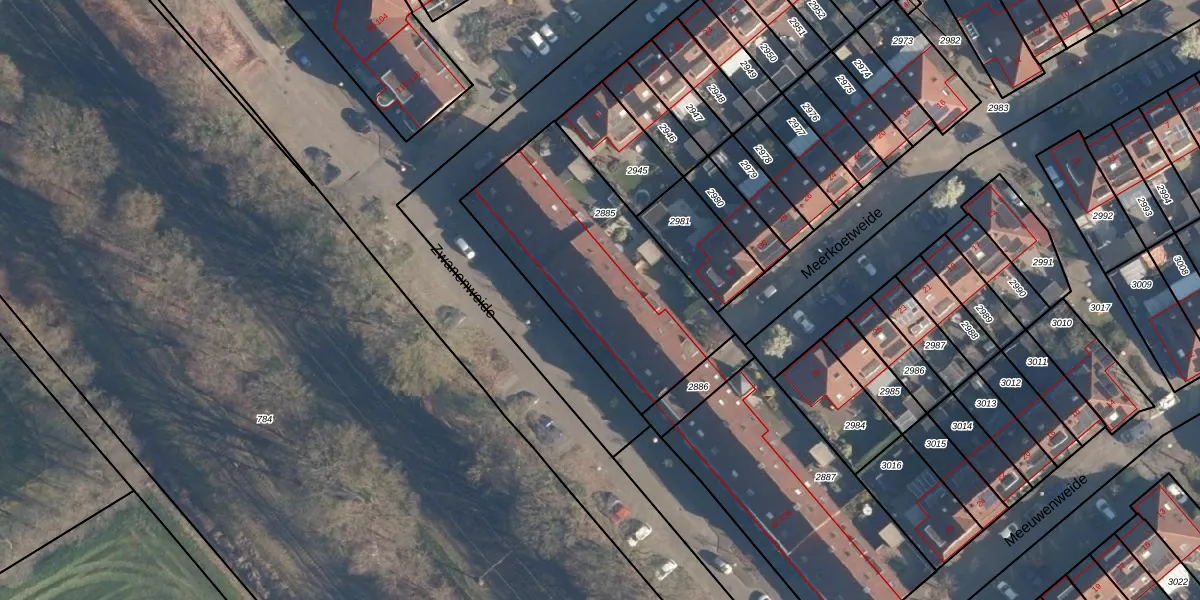 Het perceel waarop Zwanenweide 90 staat heeft een oppervlakte van 1000 m². Dit is een zeer groot perceel. De perceeloppervlakte wordt geregistreerd door het Kadaster. Gedetailleerde informatie over de maten van dit perceel kunt u vinden in het rapport Kadastrale kaart met maatvoering van Zwanenweide 90.