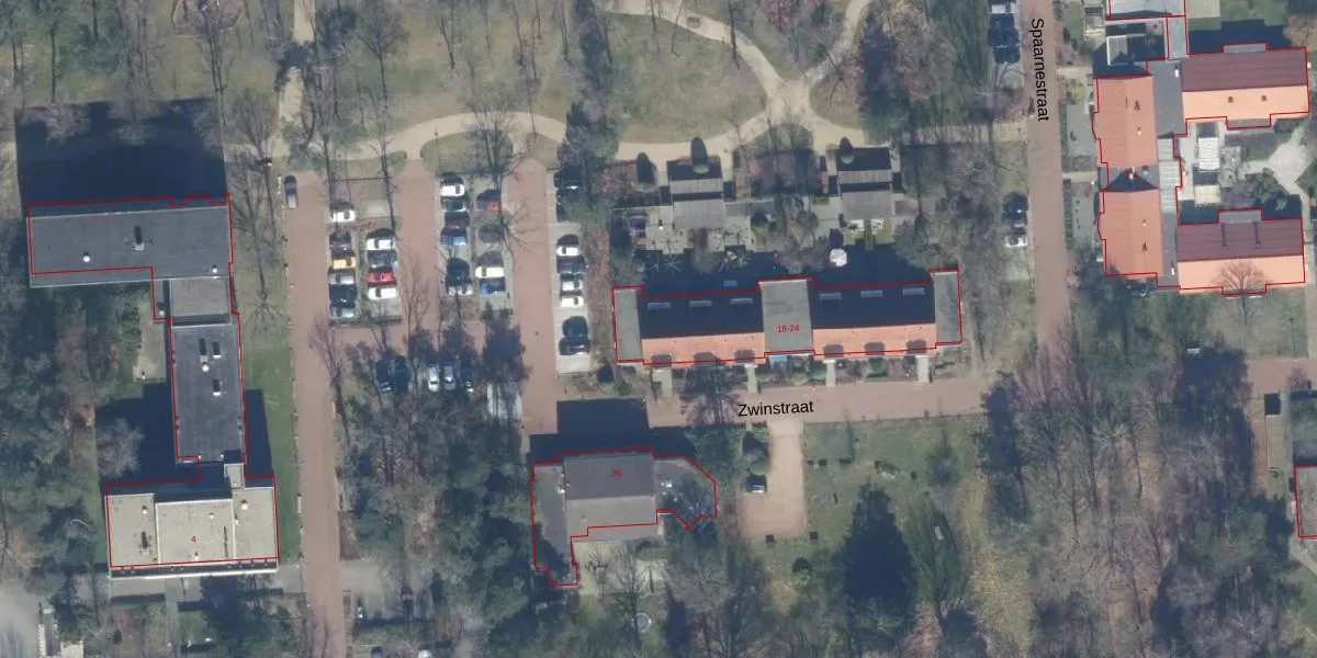 Het perceel waarop Zwinstraat 24 staat heeft een oppervlakte van 24,2 ha. Dit is een zeer groot perceel. De perceeloppervlakte wordt geregistreerd door het Kadaster. Gedetailleerde informatie over de maten van dit perceel kunt u vinden in het rapport Kadastrale kaart met maatvoering van Zwinstraat 24.