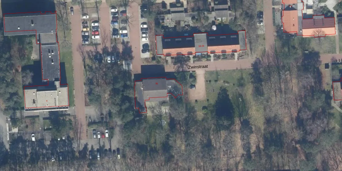 Het perceel waarop Zwinstraat 35 staat heeft een oppervlakte van 24,2 ha. Dit is een zeer groot perceel. De perceeloppervlakte wordt geregistreerd door het Kadaster. Gedetailleerde informatie over de maten van dit perceel kunt u vinden in het rapport Kadastrale kaart met maatvoering van Zwinstraat 35.
