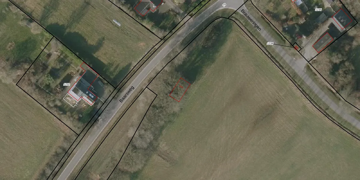Het perceel waarop Baarsweg 16-A staat heeft een oppervlakte van 1,8 ha. Dit is een zeer groot perceel. De perceeloppervlakte wordt geregistreerd door het Kadaster. Gedetailleerde informatie over de maten van dit perceel kunt u vinden in het rapport Kadastrale kaart met maatvoering van Baarsweg 16-A.