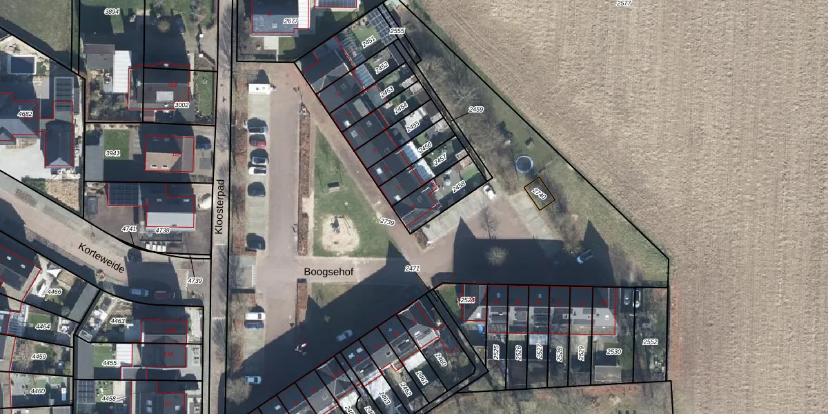Boogsehof 15 is gelegen op kadastraal perceel ZVN02D2458. Deze kadastrale aanduiding is uniek en wordt gebruikt door het Kadaster om eigendomsrechten en andere zakelijke rechten vast te leggen. Het perceel maakt onderdeel uit van de kadastrale gemeente Oud-Zevenaar.