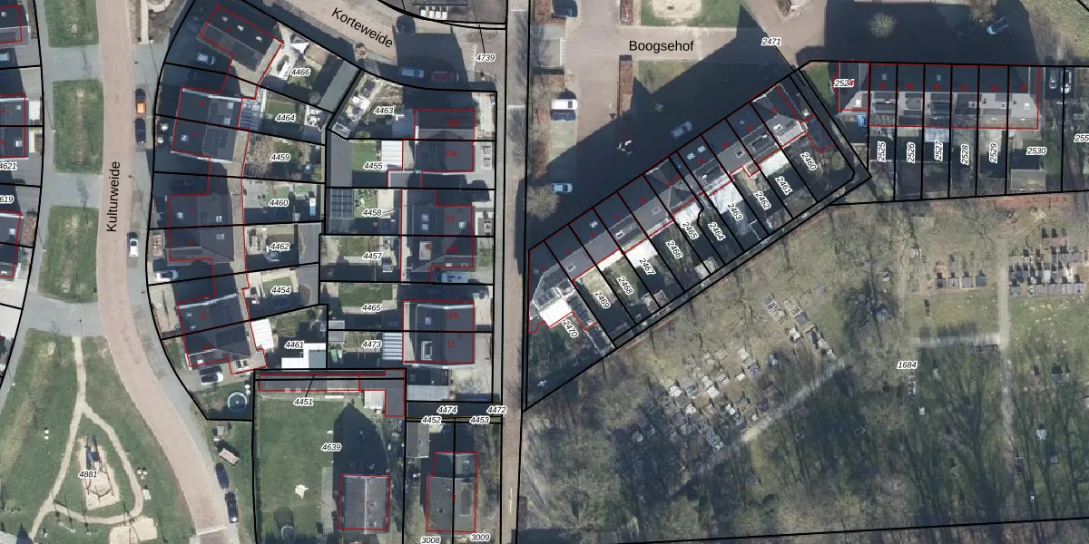 Gebruik de zoekbalk of klik op een perceel voor informatie over de adressen binnen dit perceel.