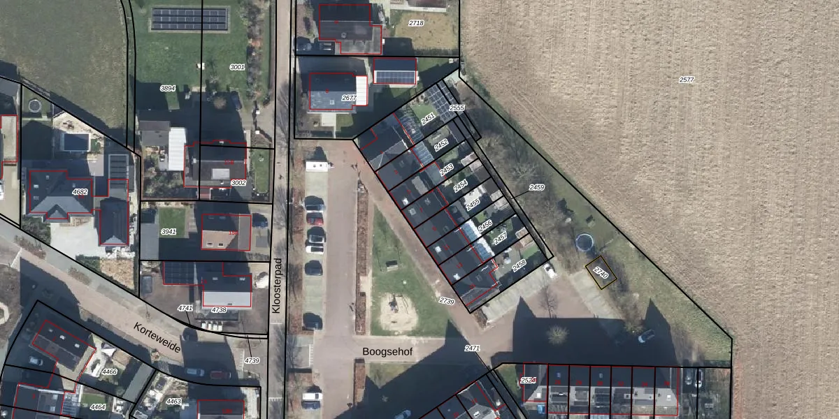 Boogsehof 7 is gelegen op kadastraal perceel ZVN02D2454. Deze kadastrale aanduiding is uniek en wordt gebruikt door het Kadaster om eigendomsrechten en andere zakelijke rechten vast te leggen. Het perceel maakt onderdeel uit van de kadastrale gemeente Oud-Zevenaar.