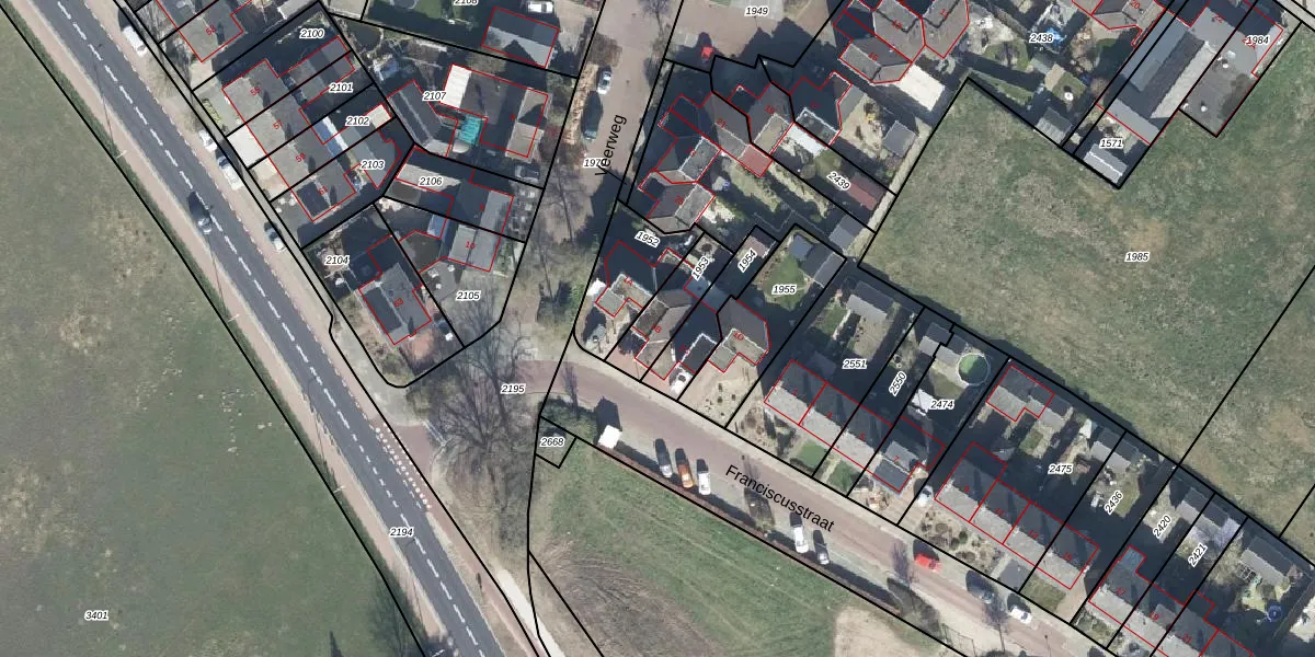 Franciscusstraat 1-B is gelegen op kadastraal perceel ZVN02D1953. Deze kadastrale aanduiding is uniek en wordt gebruikt door het Kadaster om eigendomsrechten en andere zakelijke rechten vast te leggen. Het perceel maakt onderdeel uit van de kadastrale gemeente Oud-Zevenaar.