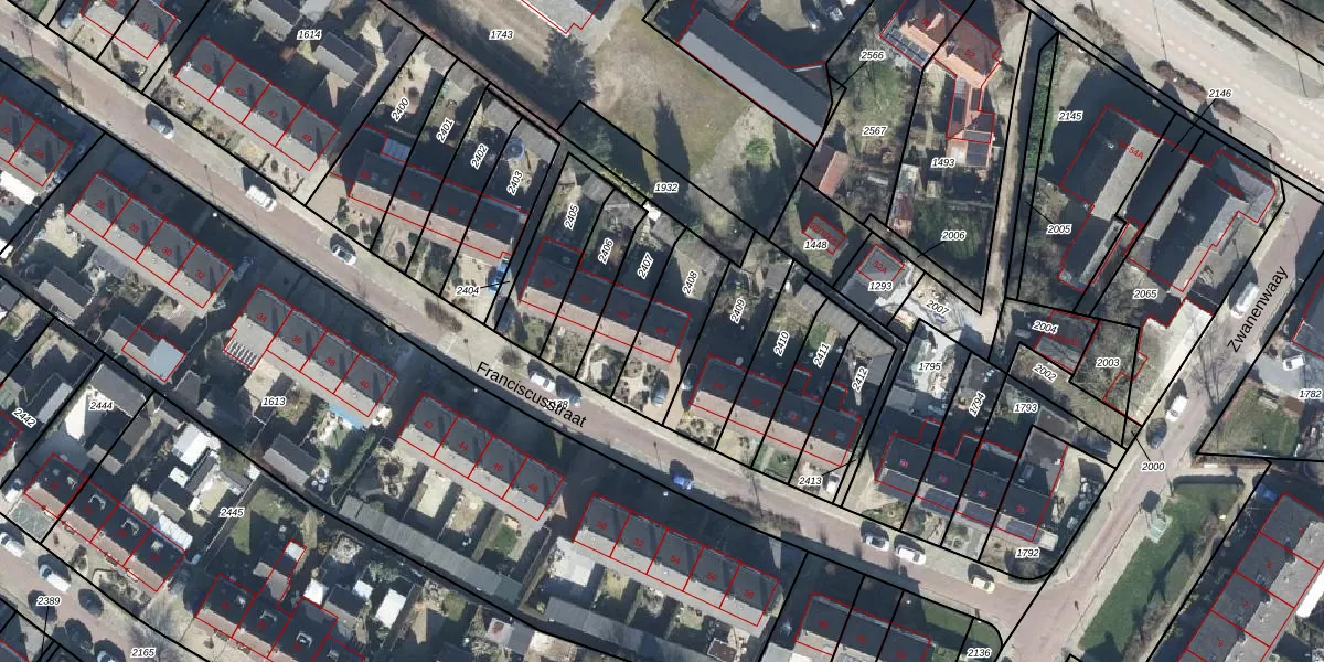 Franciscusstraat 65 is gelegen op kadastraal perceel ZVN02D2408. Deze kadastrale aanduiding is uniek en wordt gebruikt door het Kadaster om eigendomsrechten en andere zakelijke rechten vast te leggen. Het perceel maakt onderdeel uit van de kadastrale gemeente Oud-Zevenaar.