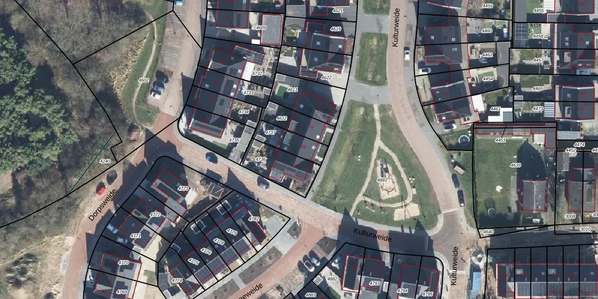 Kulturweide 16 is gelegen op kadastraal perceel ZVN02C4737. Deze kadastrale aanduiding is uniek en wordt gebruikt door het Kadaster om eigendomsrechten en andere zakelijke rechten vast te leggen. Het perceel maakt onderdeel uit van de kadastrale gemeente Oud-Zevenaar.