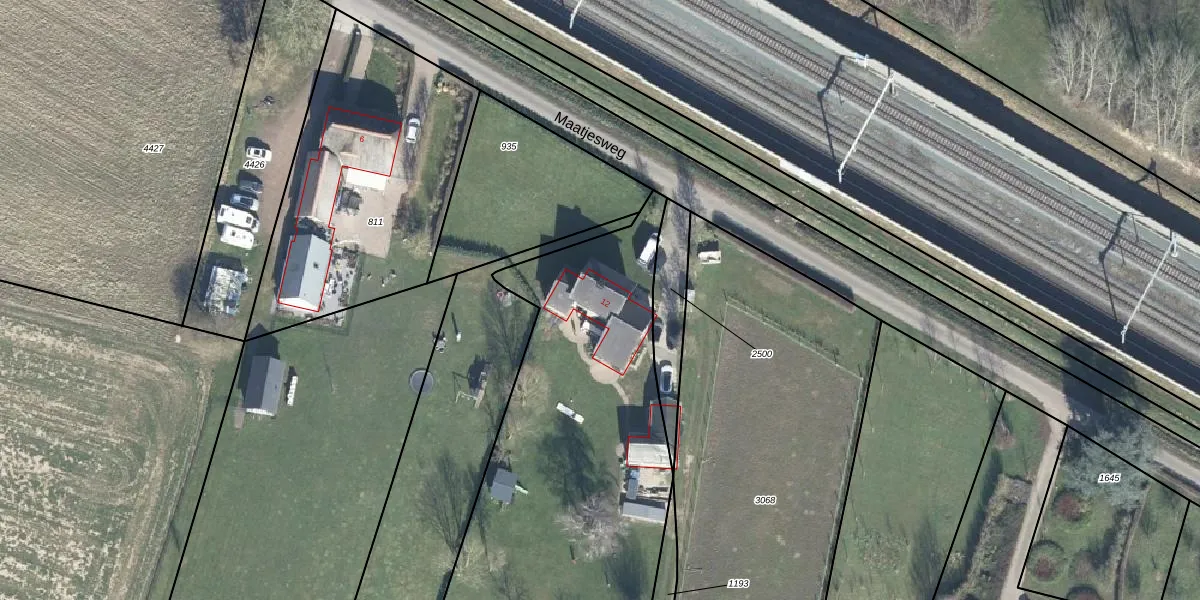 Het perceel waarop Maatjesweg 12 staat heeft een oppervlakte van 3620 m². Dit is een zeer groot perceel. De perceeloppervlakte wordt geregistreerd door het Kadaster. Gedetailleerde informatie over de maten van dit perceel kunt u vinden in het rapport Kadastrale kaart met maatvoering van Maatjesweg 12.