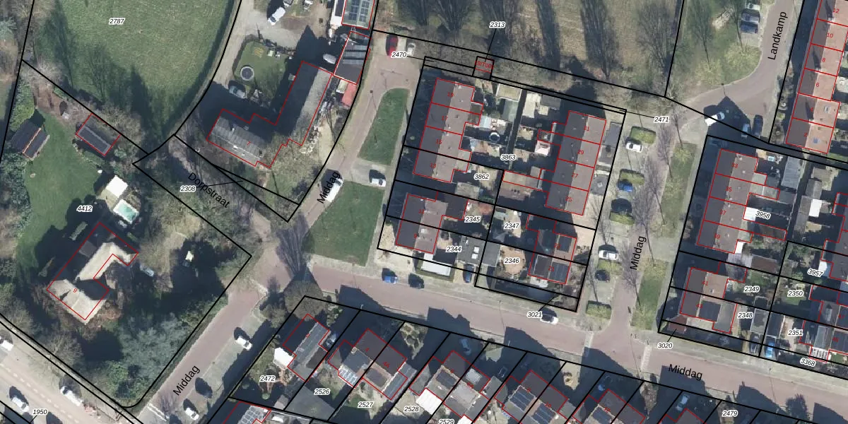 Het perceel waarop Middag 11 staat heeft een oppervlakte van 211 m². Dit is een middelgroot perceel. De perceeloppervlakte wordt geregistreerd door het Kadaster. Gedetailleerde informatie over de maten van dit perceel kunt u vinden in het rapport Kadastrale kaart met maatvoering van Middag 11.