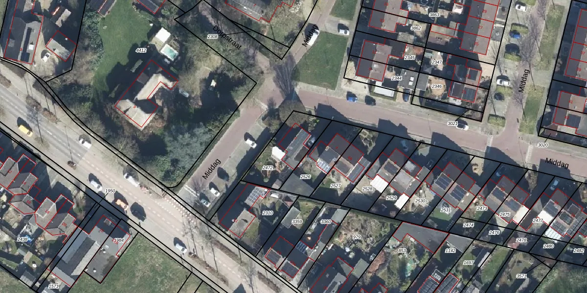 Gebruik de zoekbalk of klik op een perceel voor informatie over de adressen binnen dit perceel.