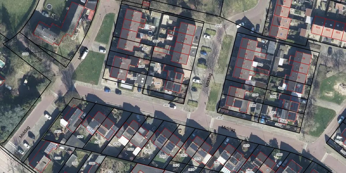 Het perceel waarop Middag 21 staat heeft een oppervlakte van 198 m². Dit is een middelgroot perceel. De perceeloppervlakte wordt geregistreerd door het Kadaster. Gedetailleerde informatie over de maten van dit perceel kunt u vinden in het rapport Kadastrale kaart met maatvoering van Middag 21.