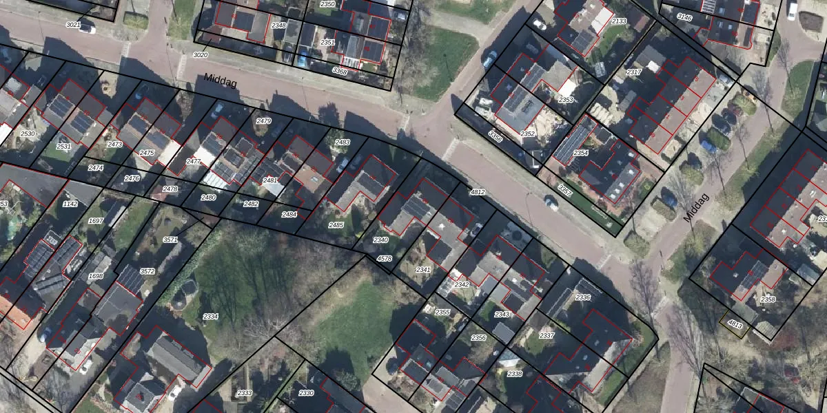 Gebruik de zoekbalk of klik op een perceel voor informatie over de adressen binnen dit perceel.
