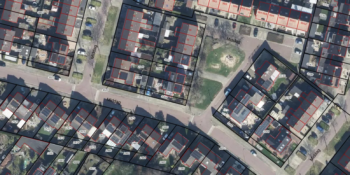 Het perceel waarop Middag 45 staat heeft een oppervlakte van 198 m². Dit is een middelgroot perceel. De perceeloppervlakte wordt geregistreerd door het Kadaster. Gedetailleerde informatie over de maten van dit perceel kunt u vinden in het rapport Kadastrale kaart met maatvoering van Middag 45.