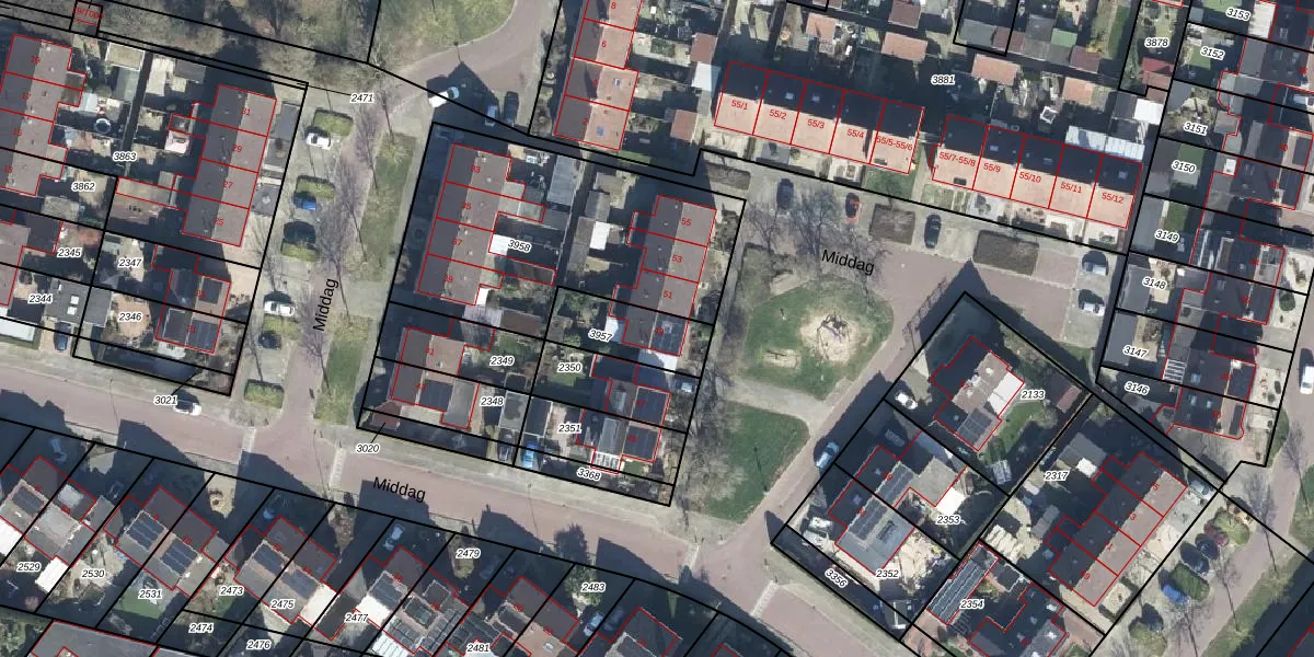 Het perceel waarop Middag 49 staat heeft een oppervlakte van 206 m². Dit is een middelgroot perceel. De perceeloppervlakte wordt geregistreerd door het Kadaster. Gedetailleerde informatie over de maten van dit perceel kunt u vinden in het rapport Kadastrale kaart met maatvoering van Middag 49.