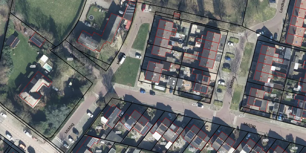 Gebruik de zoekbalk of klik op een perceel voor informatie over de adressen binnen dit perceel.