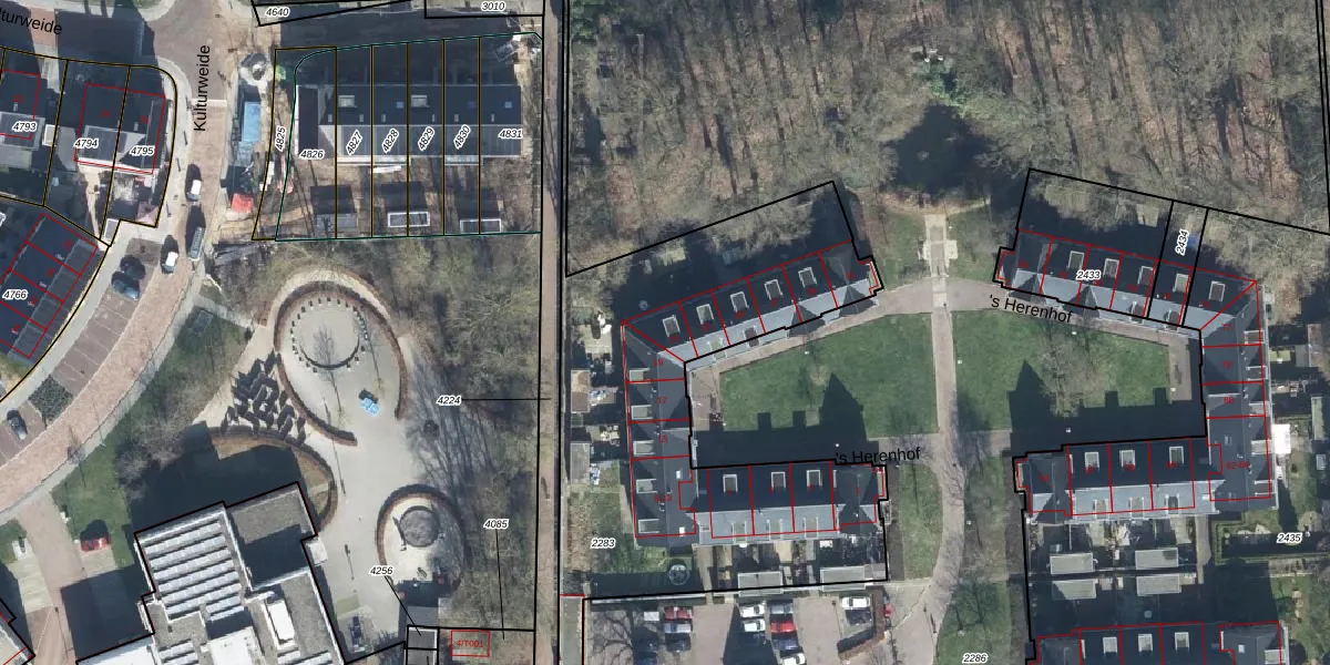 Het perceel waarop 's Herenhof 21 staat heeft een oppervlakte van 2105 m². Dit is een zeer groot perceel. De perceeloppervlakte wordt geregistreerd door het Kadaster. Gedetailleerde informatie over de maten van dit perceel kunt u vinden in het rapport Kadastrale kaart met maatvoering van 's Herenhof 21.