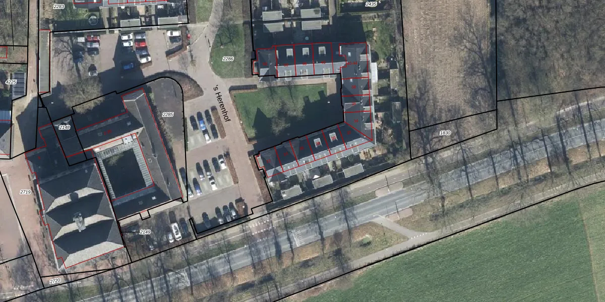 Het perceel waarop 's Herenhof 26 staat heeft een oppervlakte van 3912 m². Dit is een zeer groot perceel. De perceeloppervlakte wordt geregistreerd door het Kadaster. Gedetailleerde informatie over de maten van dit perceel kunt u vinden in het rapport Kadastrale kaart met maatvoering van 's Herenhof 26.