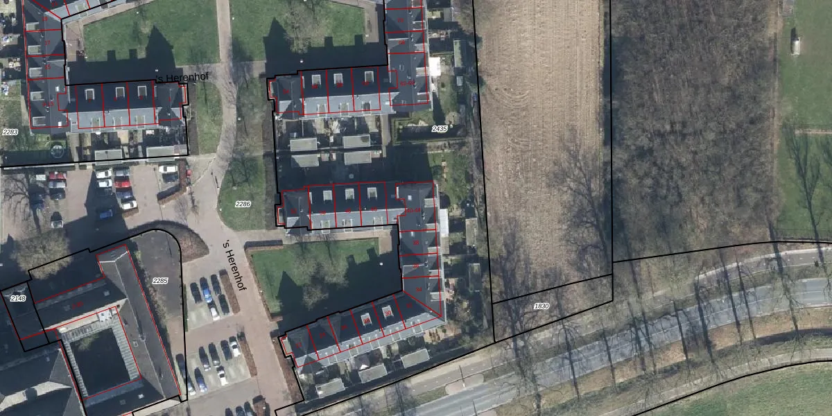 Het perceel waarop 's Herenhof 40 staat heeft een oppervlakte van 3912 m². Dit is een zeer groot perceel. De perceeloppervlakte wordt geregistreerd door het Kadaster. Gedetailleerde informatie over de maten van dit perceel kunt u vinden in het rapport Kadastrale kaart met maatvoering van 's Herenhof 40.