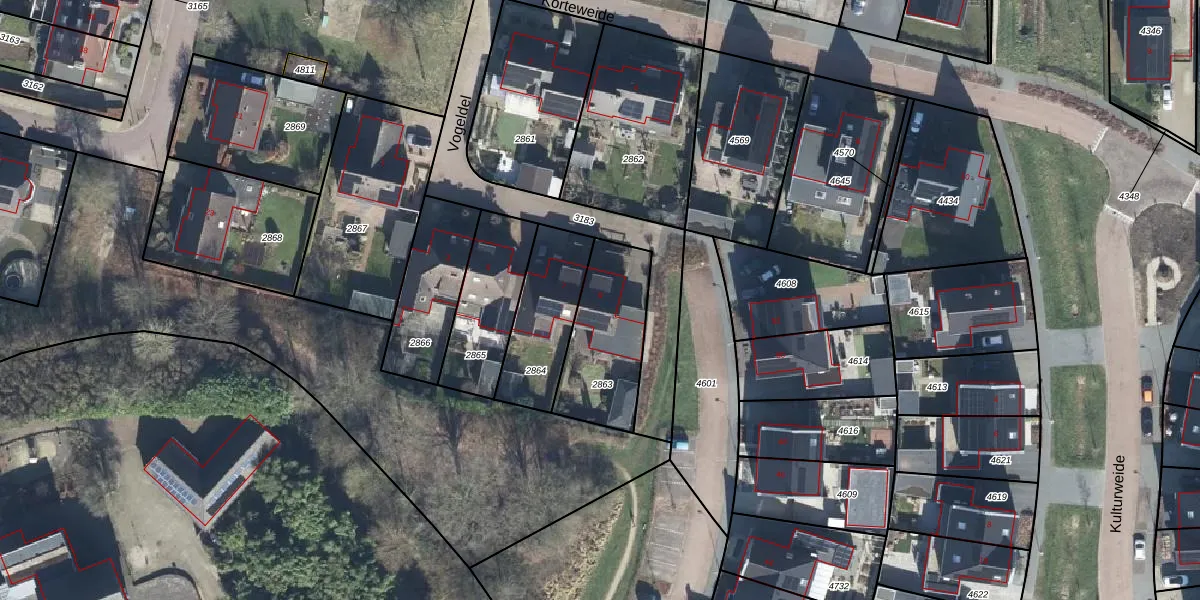 Vogeldel 9 is gelegen op kadastraal perceel ZVN02C2863. Deze kadastrale aanduiding is uniek en wordt gebruikt door het Kadaster om eigendomsrechten en andere zakelijke rechten vast te leggen. Het perceel maakt onderdeel uit van de kadastrale gemeente Oud-Zevenaar.