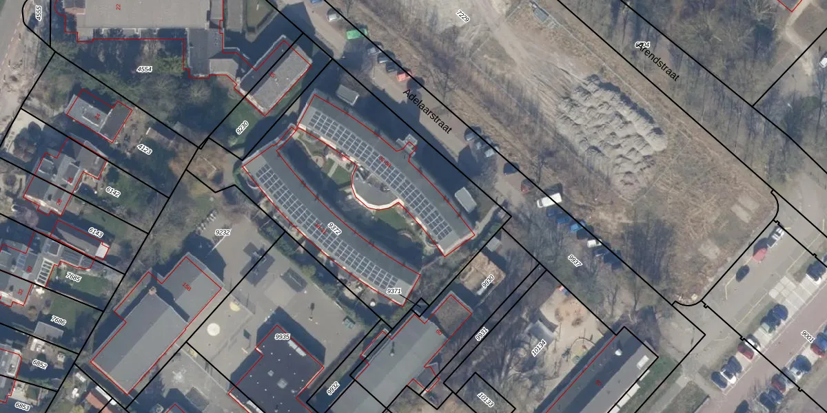 Het perceel waarop Adelaarstraat 46 staat heeft een oppervlakte van 2293 m². Dit is een zeer groot perceel. De perceeloppervlakte wordt geregistreerd door het Kadaster. Gedetailleerde informatie over de maten van dit perceel kunt u vinden in het rapport Kadastrale kaart met maatvoering van Adelaarstraat 46.
