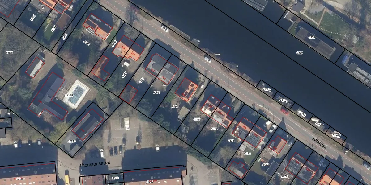 Het perceel waarop Akerdijk 254 staat heeft een oppervlakte van 530 m². Dit is een groot perceel. De perceeloppervlakte wordt geregistreerd door het Kadaster. Gedetailleerde informatie over de maten van dit perceel kunt u vinden in het rapport Kadastrale kaart met maatvoering van Akerdijk 254.