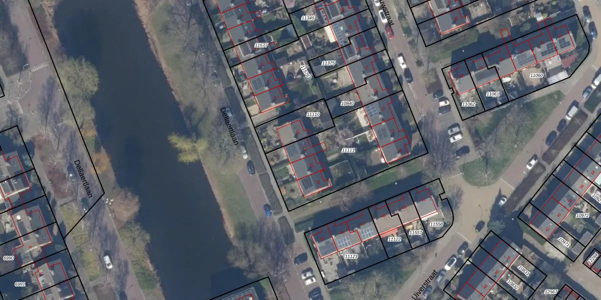 Het perceel waarop Dellaertlaan 18 staat heeft een oppervlakte van 1085 m². Dit is een zeer groot perceel. De perceeloppervlakte wordt geregistreerd door het Kadaster. Gedetailleerde informatie over de maten van dit perceel kunt u vinden in het rapport Kadastrale kaart met maatvoering van Dellaertlaan 18.