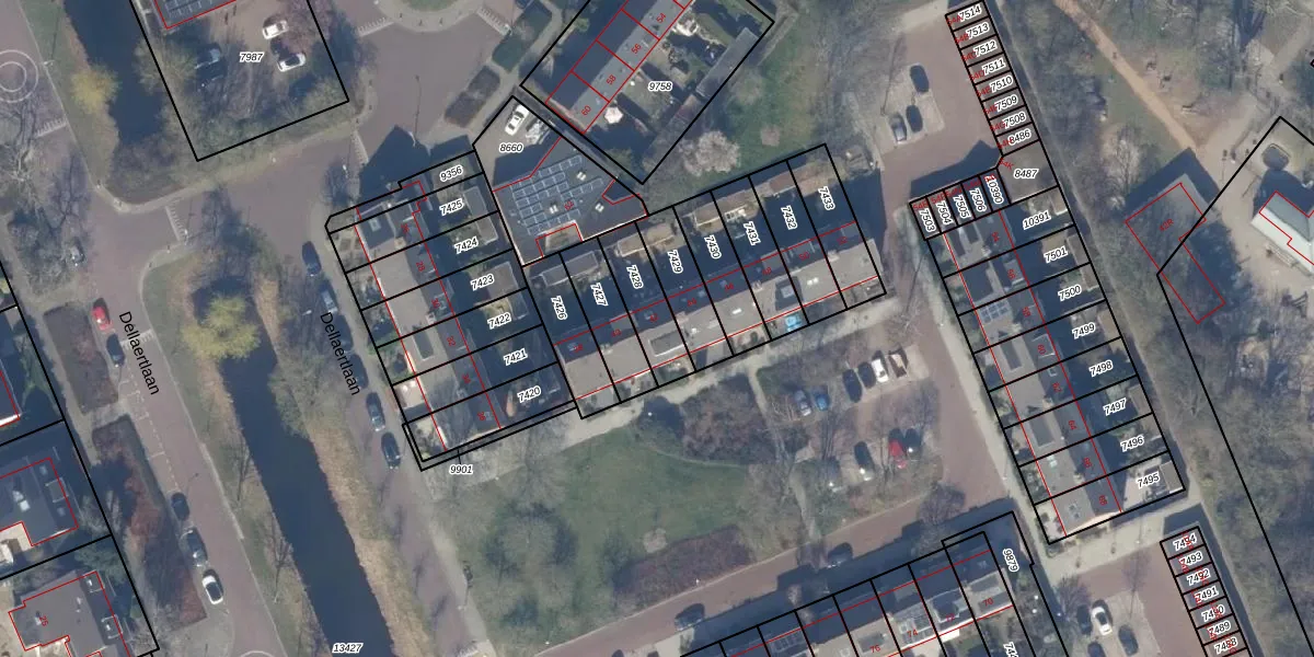 Dellaertlaan 42 is gelegen op kadastraal perceel HLM03H7428. Deze kadastrale aanduiding is uniek en wordt gebruikt door het Kadaster om eigendomsrechten en andere zakelijke rechten vast te leggen. Het perceel maakt onderdeel uit van de kadastrale gemeente Haarlemmermeer.