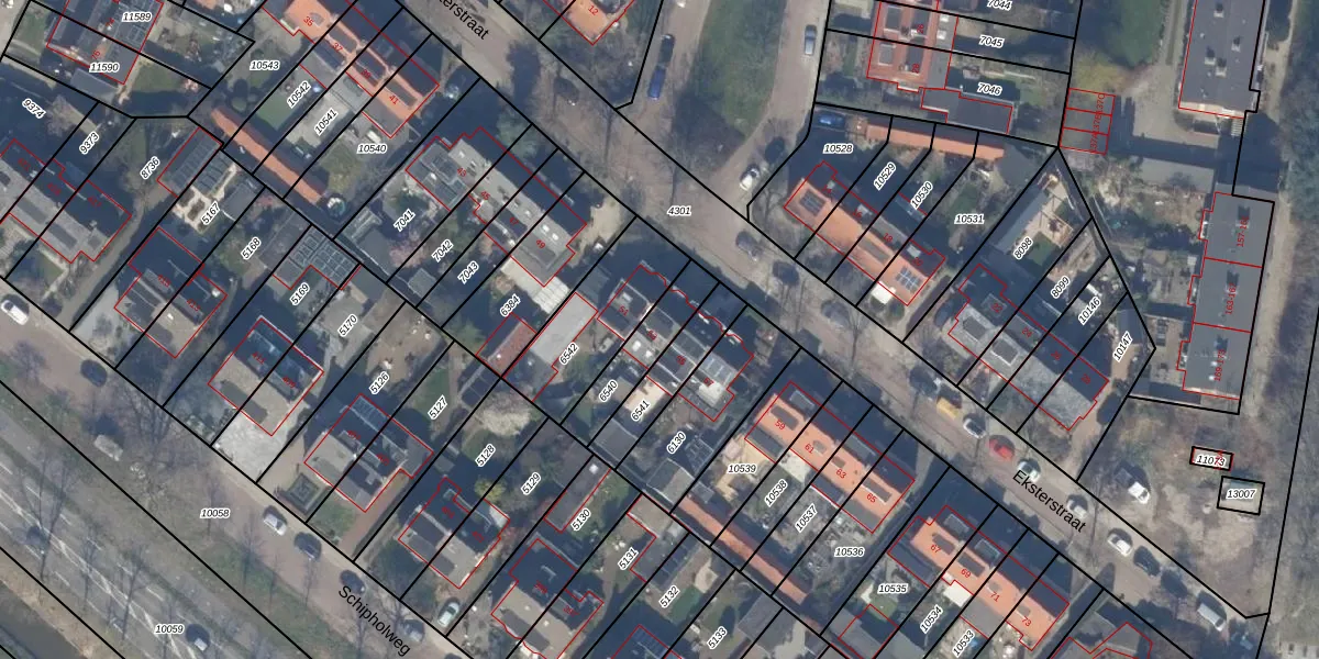 Eksterstraat 53 is gelegen op kadastraal perceel HLM03H6540. Deze kadastrale aanduiding is uniek en wordt gebruikt door het Kadaster om eigendomsrechten en andere zakelijke rechten vast te leggen. Het perceel maakt onderdeel uit van de kadastrale gemeente Haarlemmermeer.