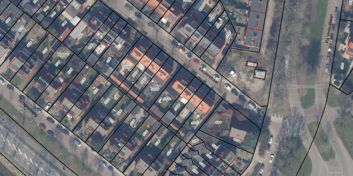 Het perceel waarop Eksterstraat 67 staat heeft een oppervlakte van 291 m². Dit is een middelgroot perceel. De perceeloppervlakte wordt geregistreerd door het Kadaster. Gedetailleerde informatie over de maten van dit perceel kunt u vinden in het rapport Kadastrale kaart met maatvoering van Eksterstraat 67.