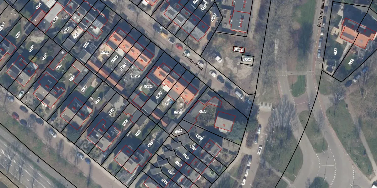 Het perceel waarop Eksterstraat 73 staat heeft een oppervlakte van 285 m². Dit is een middelgroot perceel. De perceeloppervlakte wordt geregistreerd door het Kadaster. Gedetailleerde informatie over de maten van dit perceel kunt u vinden in het rapport Kadastrale kaart met maatvoering van Eksterstraat 73.