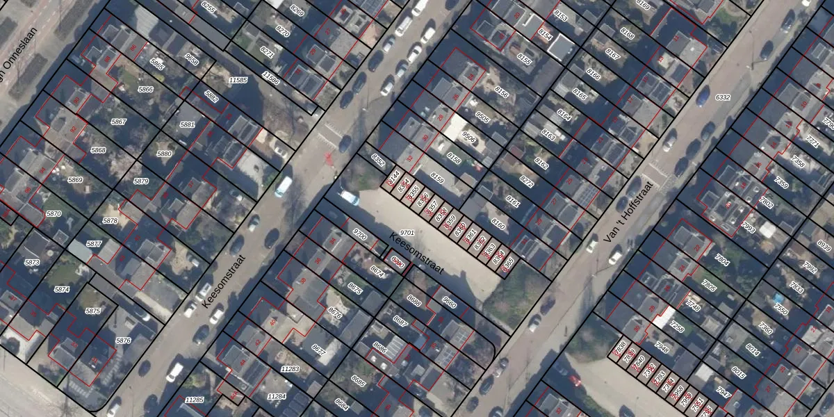 Het perceel waarop Keesomstraat 32-D staat heeft een oppervlakte van 19 m². Dit is een klein perceel. De perceeloppervlakte wordt geregistreerd door het Kadaster. Gedetailleerde informatie over de maten van dit perceel kunt u vinden in het rapport Kadastrale kaart met maatvoering van Keesomstraat 32-D.