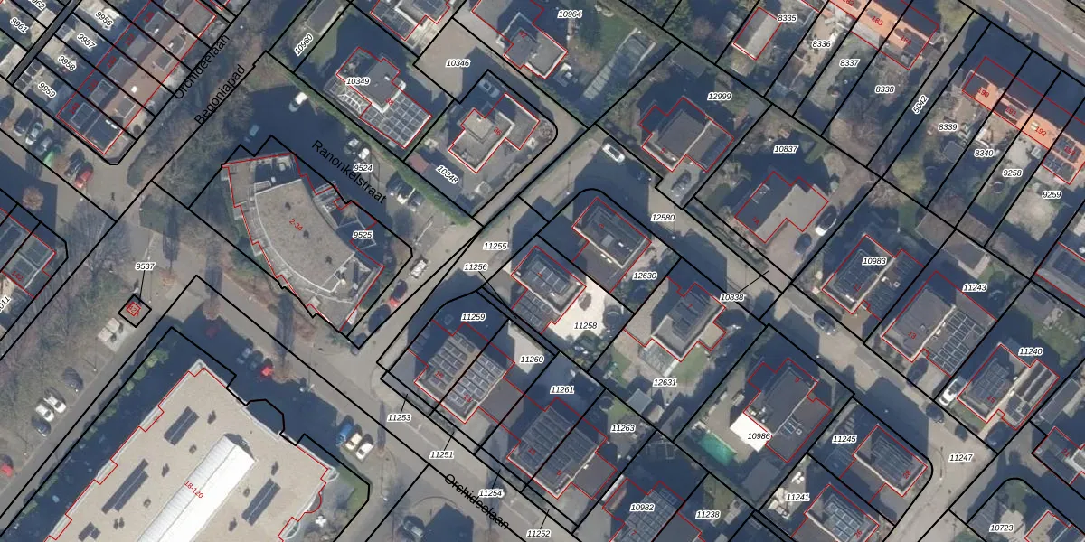 Het perceel waarop Ranonkelstraat 1 staat heeft een oppervlakte van 336 m². Dit is een groot perceel. De perceeloppervlakte wordt geregistreerd door het Kadaster. Gedetailleerde informatie over de maten van dit perceel kunt u vinden in het rapport Kadastrale kaart met maatvoering van Ranonkelstraat 1.