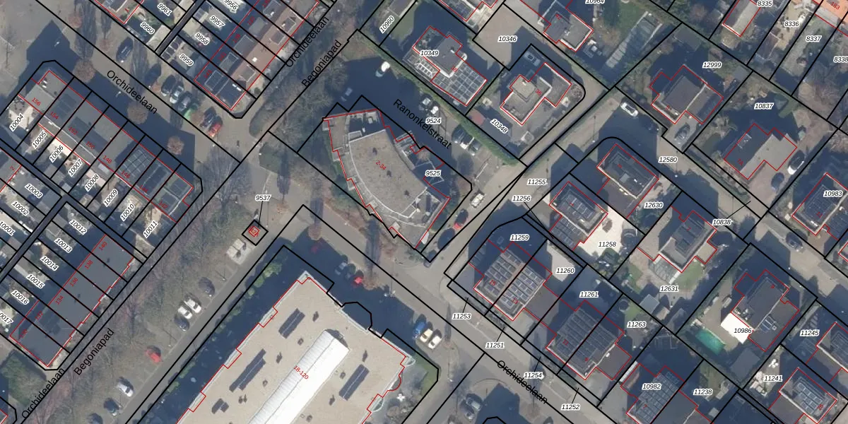 Het perceel waarop Ranonkelstraat 12 staat heeft een oppervlakte van 737 m². Dit is een groot perceel. De perceeloppervlakte wordt geregistreerd door het Kadaster. Gedetailleerde informatie over de maten van dit perceel kunt u vinden in het rapport Kadastrale kaart met maatvoering van Ranonkelstraat 12.