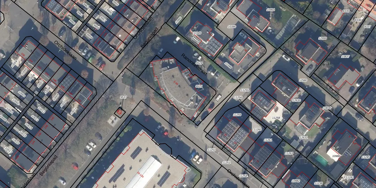 Het perceel waarop Ranonkelstraat 24 staat heeft een oppervlakte van 737 m². Dit is een groot perceel. De perceeloppervlakte wordt geregistreerd door het Kadaster. Gedetailleerde informatie over de maten van dit perceel kunt u vinden in het rapport Kadastrale kaart met maatvoering van Ranonkelstraat 24.