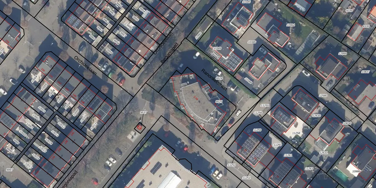 Het perceel waarop Ranonkelstraat 8 staat heeft een oppervlakte van 737 m². Dit is een groot perceel. De perceeloppervlakte wordt geregistreerd door het Kadaster. Gedetailleerde informatie over de maten van dit perceel kunt u vinden in het rapport Kadastrale kaart met maatvoering van Ranonkelstraat 8.