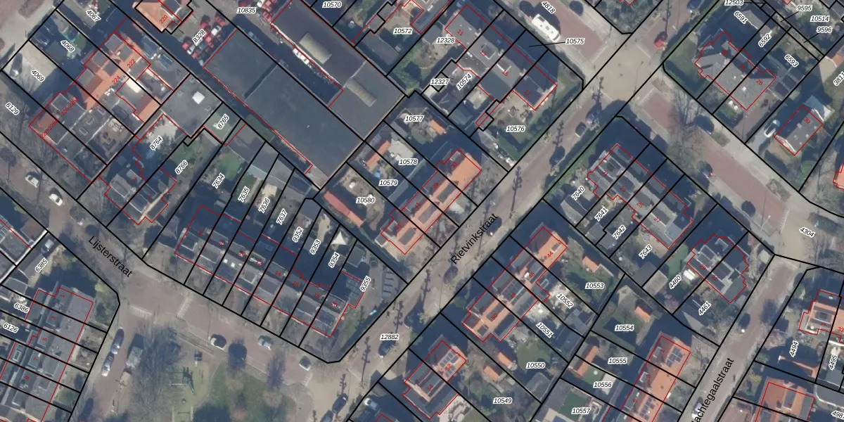 Het perceel waarop Rietvinkstraat 41 staat heeft een oppervlakte van 198 m². Dit is een middelgroot perceel. De perceeloppervlakte wordt geregistreerd door het Kadaster. Gedetailleerde informatie over de maten van dit perceel kunt u vinden in het rapport Kadastrale kaart met maatvoering van Rietvinkstraat 41.