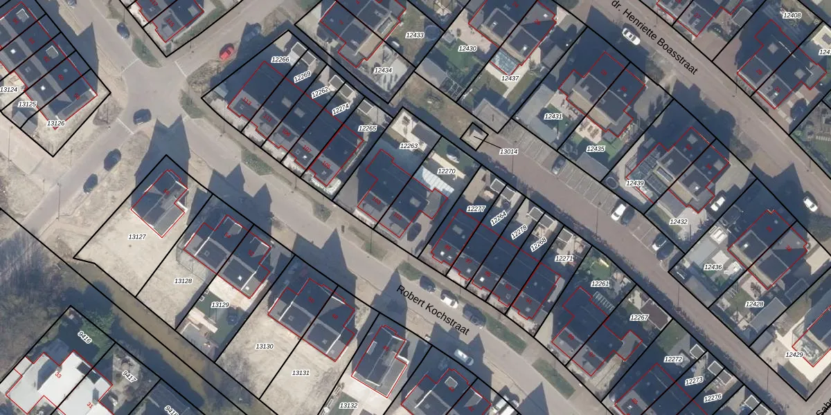 Het perceel waarop Robert Kochstraat 101 staat heeft een oppervlakte van 340 m². Dit is een groot perceel. De perceeloppervlakte wordt geregistreerd door het Kadaster. Gedetailleerde informatie over de maten van dit perceel kunt u vinden in het rapport Kadastrale kaart met maatvoering van Robert Kochstraat 101.