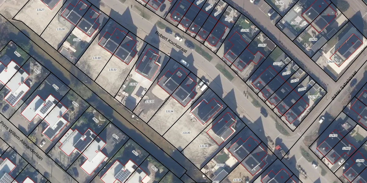 Het perceel waarop Robert Kochstraat 42 staat heeft een oppervlakte van 447 m². Dit is een groot perceel. De perceeloppervlakte wordt geregistreerd door het Kadaster. Gedetailleerde informatie over de maten van dit perceel kunt u vinden in het rapport Kadastrale kaart met maatvoering van Robert Kochstraat 42.