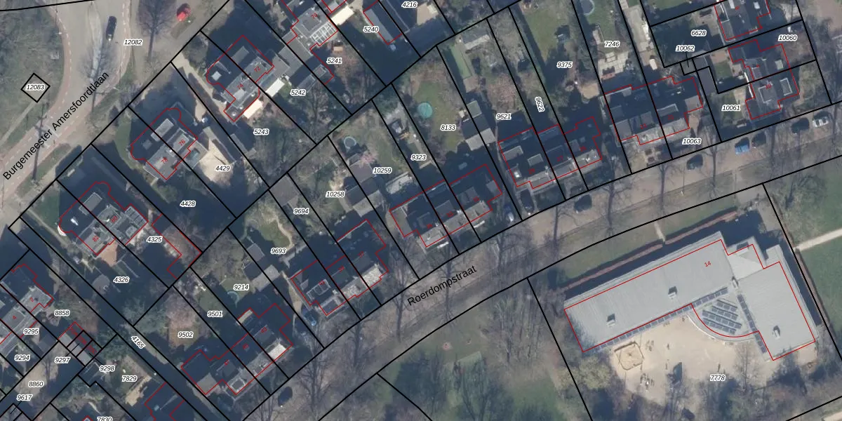 Het perceel waarop Roerdompstraat 35 staat heeft een oppervlakte van 519 m². Dit is een groot perceel. De perceeloppervlakte wordt geregistreerd door het Kadaster. Gedetailleerde informatie over de maten van dit perceel kunt u vinden in het rapport Kadastrale kaart met maatvoering van Roerdompstraat 35.