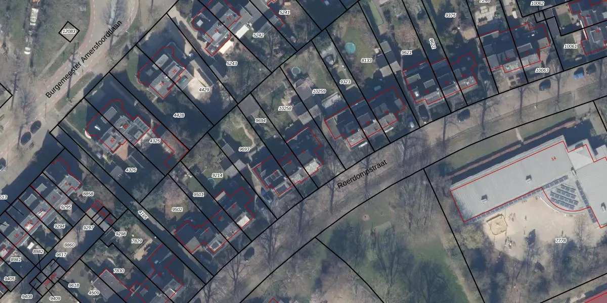 Het perceel waarop Roerdompstraat 37 staat heeft een oppervlakte van 472 m². Dit is een groot perceel. De perceeloppervlakte wordt geregistreerd door het Kadaster. Gedetailleerde informatie over de maten van dit perceel kunt u vinden in het rapport Kadastrale kaart met maatvoering van Roerdompstraat 37.