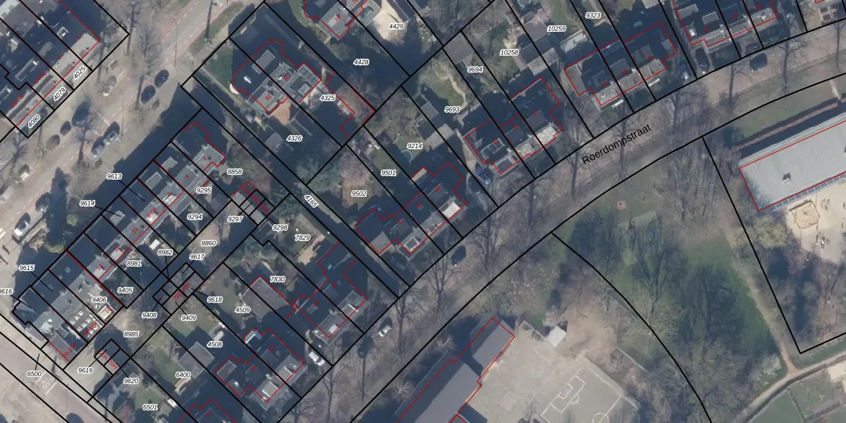 Roerdompstraat 45 is gelegen op kadastraal perceel HLM03H9501. Deze kadastrale aanduiding is uniek en wordt gebruikt door het Kadaster om eigendomsrechten en andere zakelijke rechten vast te leggen. Het perceel maakt onderdeel uit van de kadastrale gemeente Haarlemmermeer.