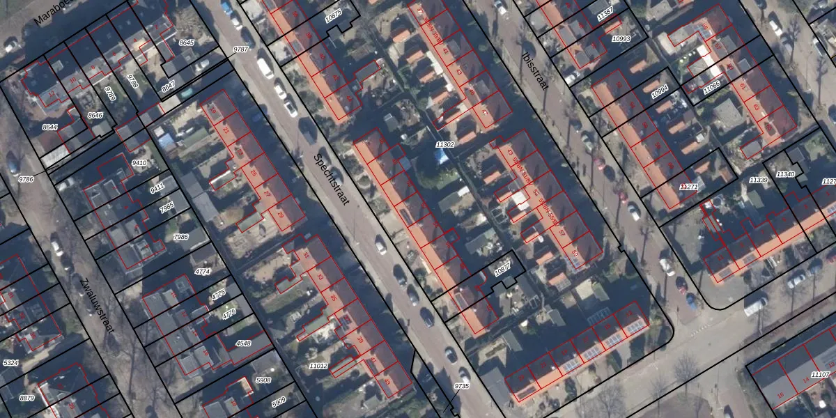 Het perceel waarop Spechtstraat 52 staat heeft een oppervlakte van 5790 m². Dit is een zeer groot perceel. De perceeloppervlakte wordt geregistreerd door het Kadaster. Gedetailleerde informatie over de maten van dit perceel kunt u vinden in het rapport Kadastrale kaart met maatvoering van Spechtstraat 52.
