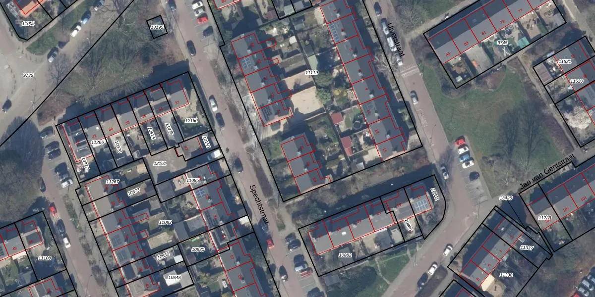 Het perceel waarop Spechtstraat 76 staat heeft een oppervlakte van 3650 m². Dit is een zeer groot perceel. De perceeloppervlakte wordt geregistreerd door het Kadaster. Gedetailleerde informatie over de maten van dit perceel kunt u vinden in het rapport Kadastrale kaart met maatvoering van Spechtstraat 76.