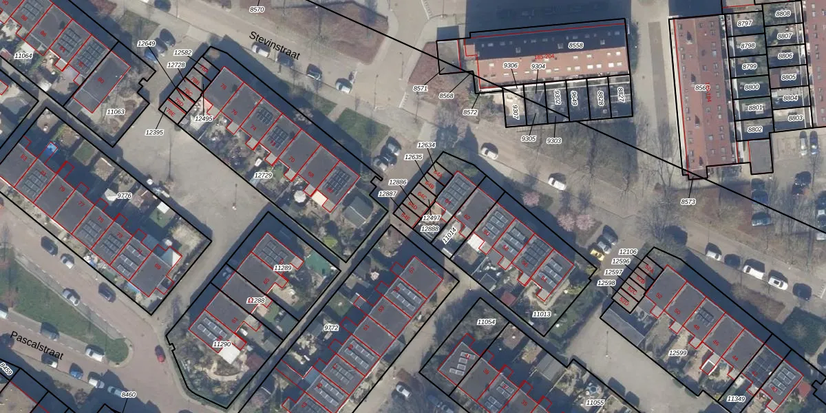 Het perceel waarop Stevinstraat 64-D staat heeft een oppervlakte van 20 m². Dit is een klein perceel. De perceeloppervlakte wordt geregistreerd door het Kadaster. Gedetailleerde informatie over de maten van dit perceel kunt u vinden in het rapport Kadastrale kaart met maatvoering van Stevinstraat 64-D.