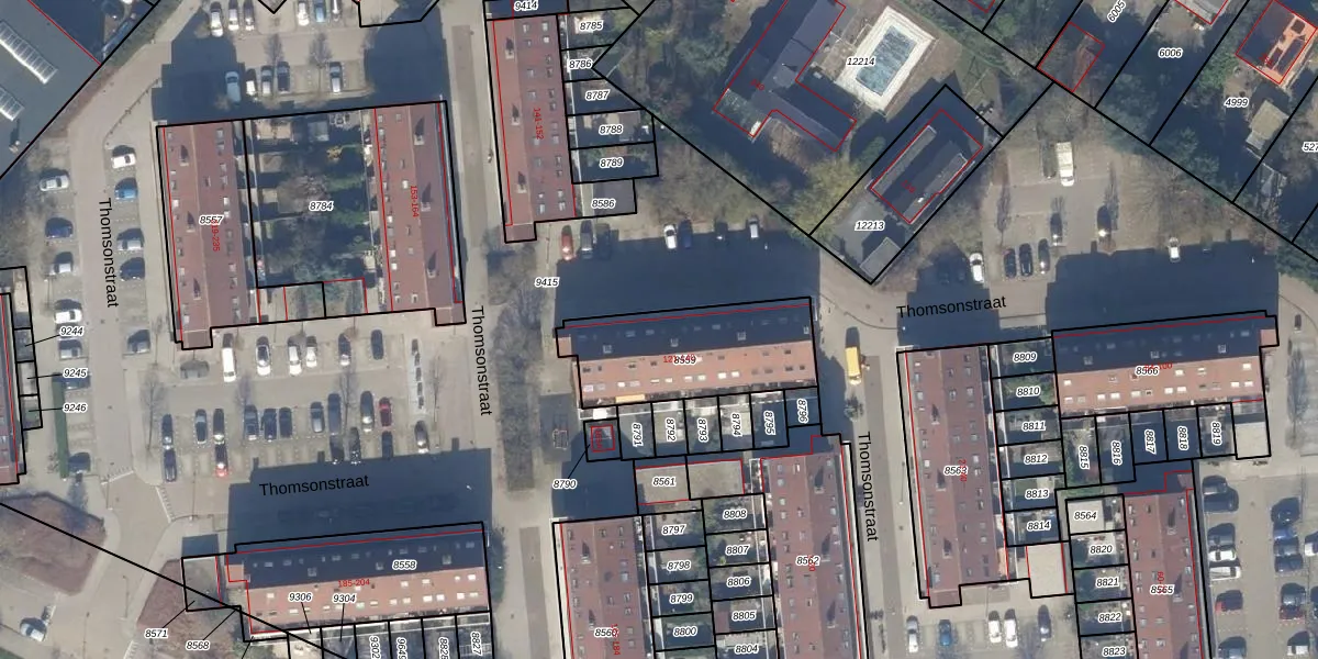 Het perceel waarop Thomsonstraat 125 staat heeft een oppervlakte van 519 m². Dit is een groot perceel. De perceeloppervlakte wordt geregistreerd door het Kadaster. Gedetailleerde informatie over de maten van dit perceel kunt u vinden in het rapport Kadastrale kaart met maatvoering van Thomsonstraat 125.