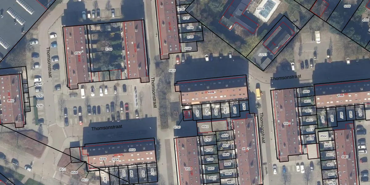 Het perceel waarop Thomsonstraat 133 staat heeft een oppervlakte van 519 m². Dit is een groot perceel. De perceeloppervlakte wordt geregistreerd door het Kadaster. Gedetailleerde informatie over de maten van dit perceel kunt u vinden in het rapport Kadastrale kaart met maatvoering van Thomsonstraat 133.